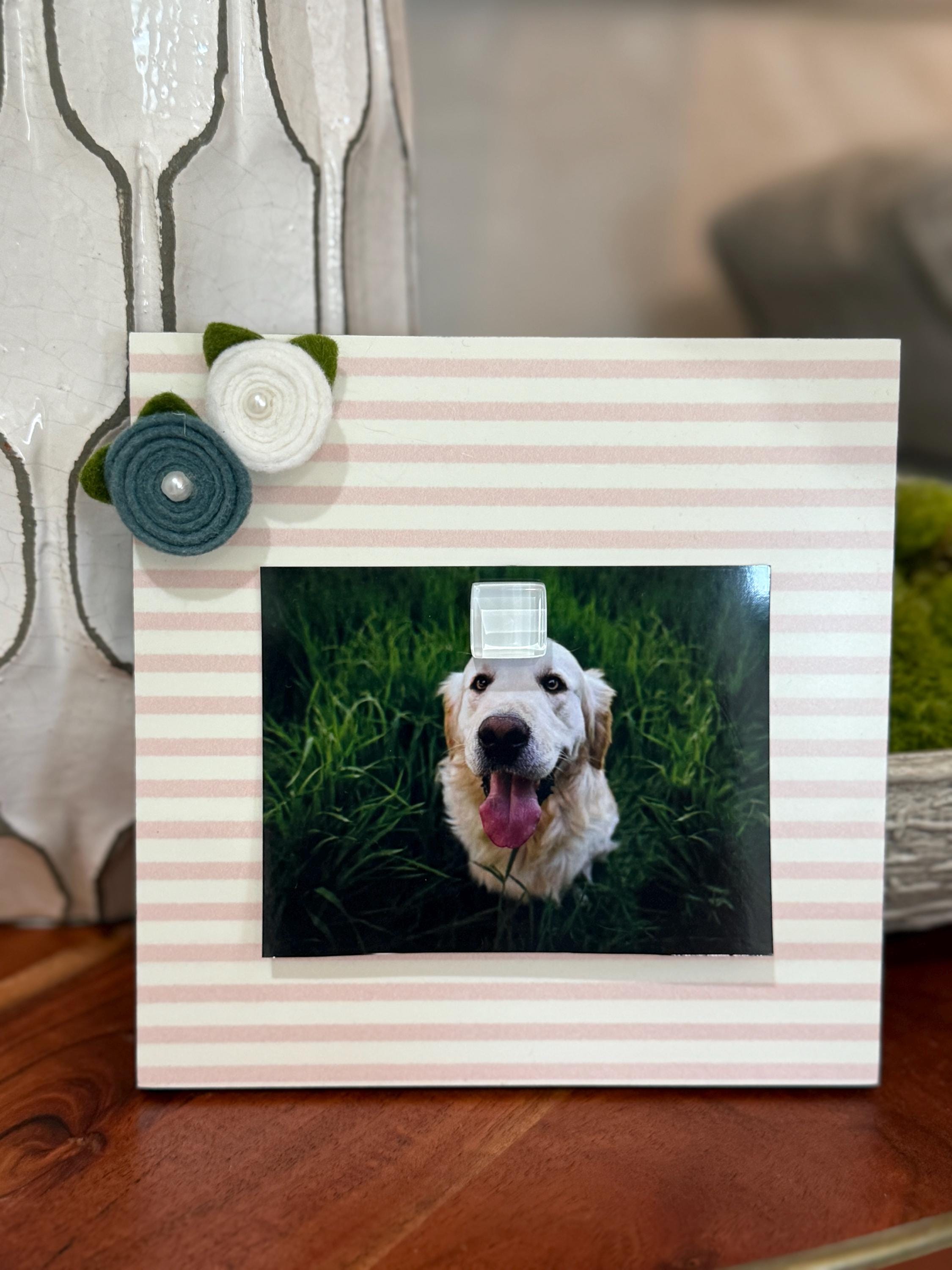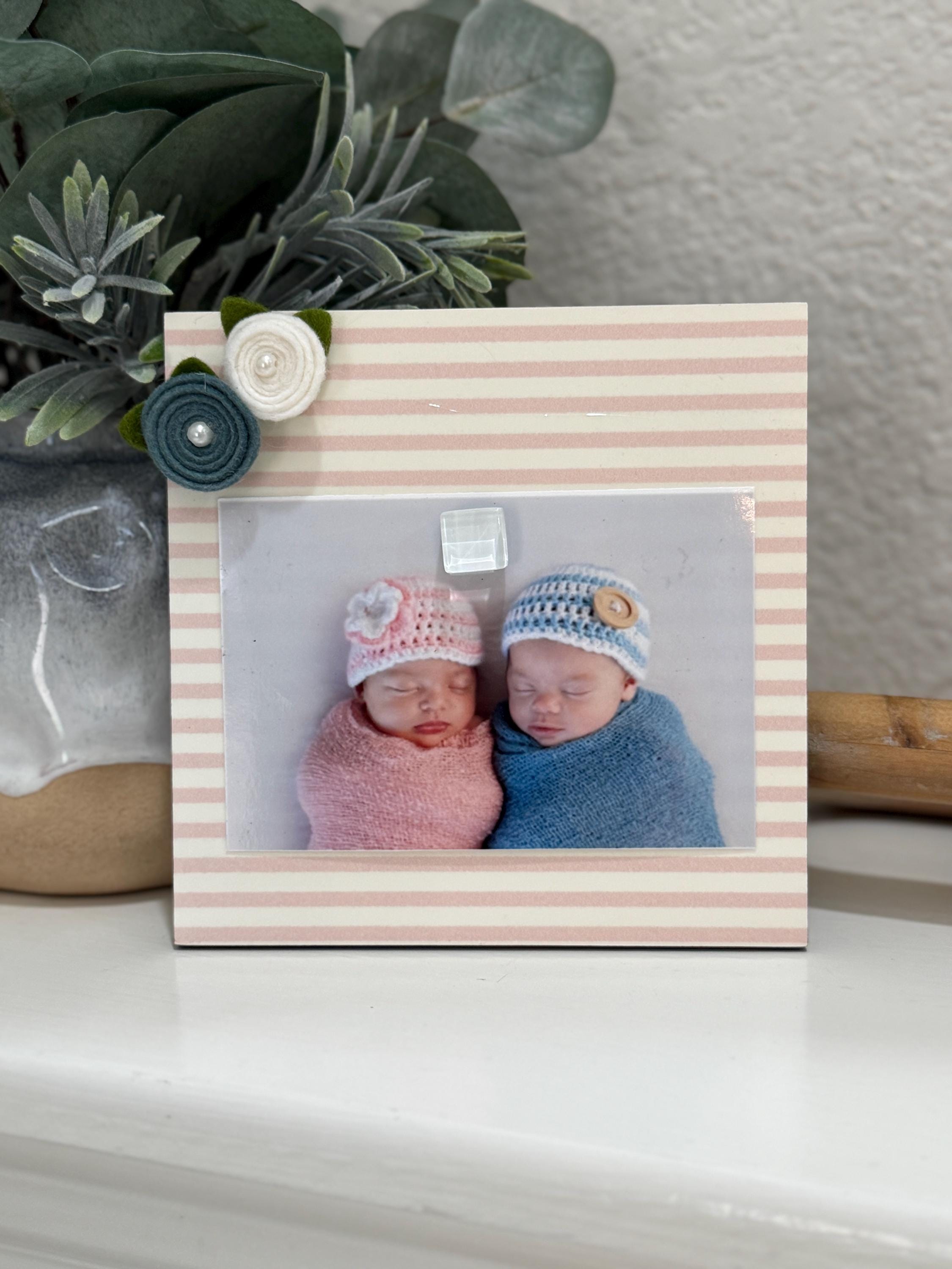 Preserve precious memories in style with this enchanting cottagecore photo frame! Handcrafted in our cozy Texas studio, this 6" square frame brings warmth and charm to any space while showcasing your most treasured 4x4" photos.
