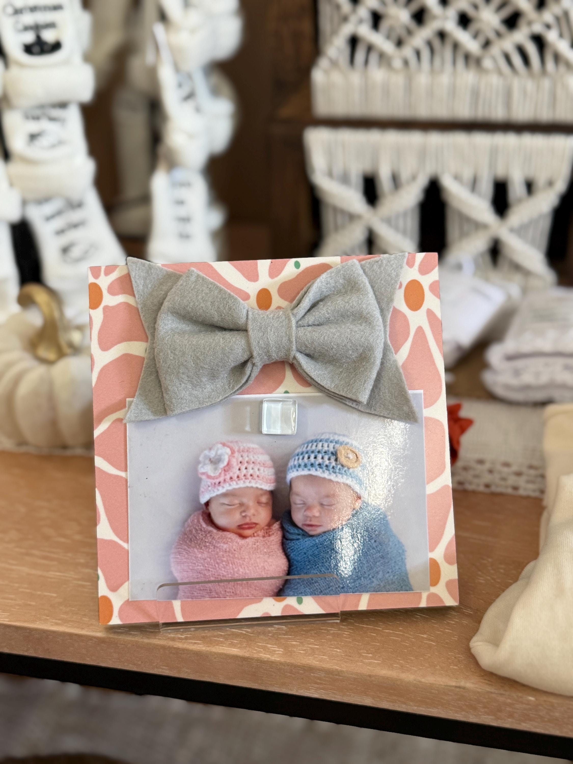 Customization Available: Choose your colors or add a meaningful phrase! Each frame features one-of-a-kind embellishments, but I'm happy to create custom pieces with your preferred colors, bows, or flowers.