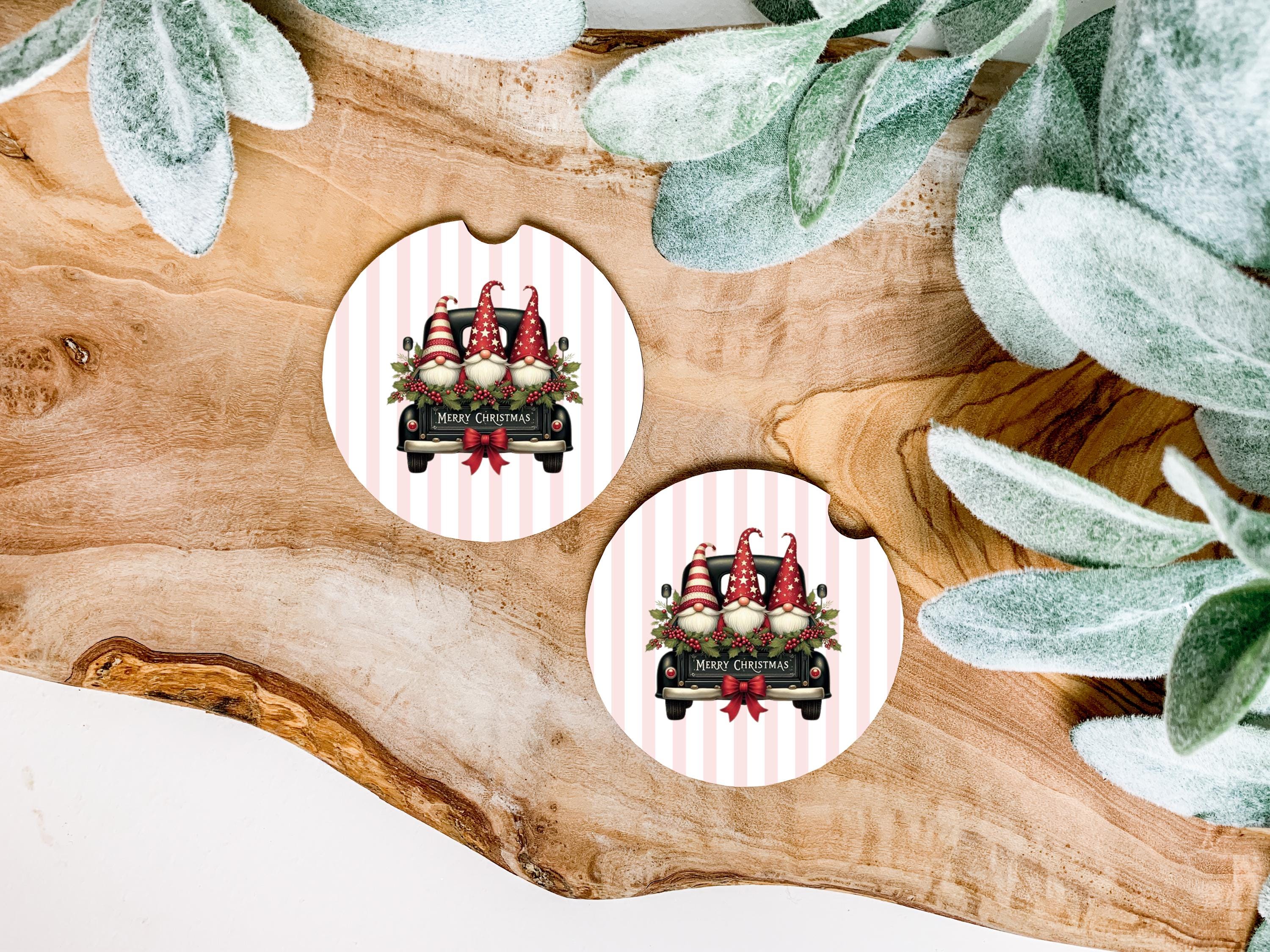 Unlike generic car coasters, this design combines playful holiday motifs with a trendy pink stripe, making it perfect for gifting or treating yourself to some seasonal joy.