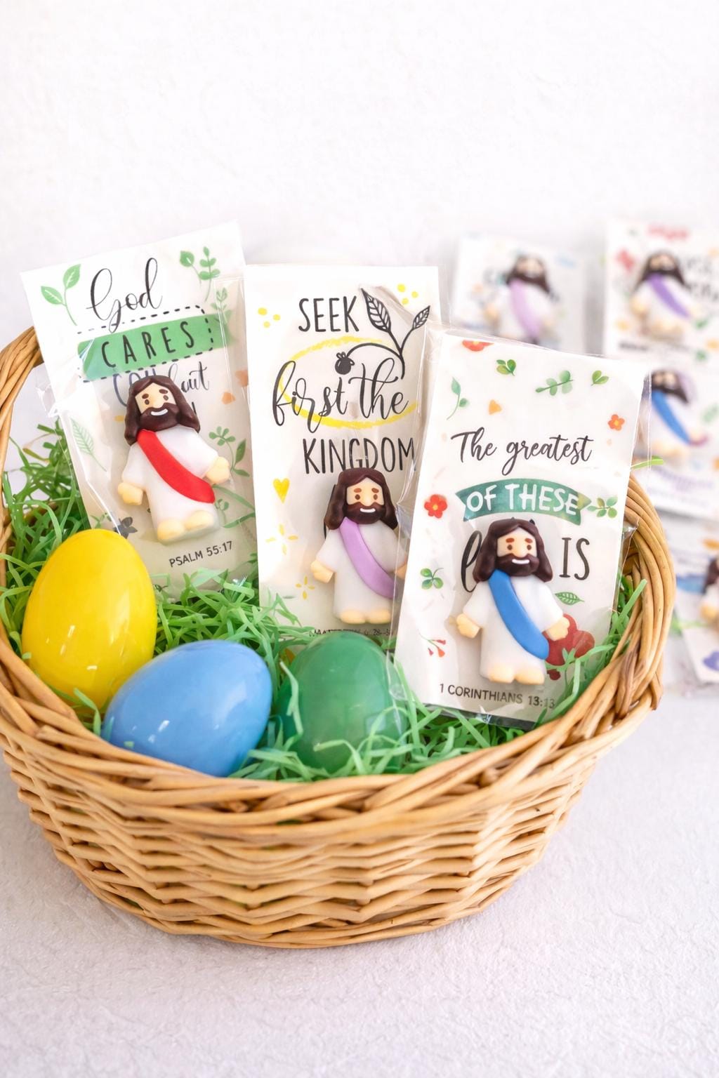These make it easy for parents and grandparents to share faith in a simple, joyful way. Kids love the mini figure — and the scripture card gives you a natural moment to talk about Jesus, love, kindness, and faith.