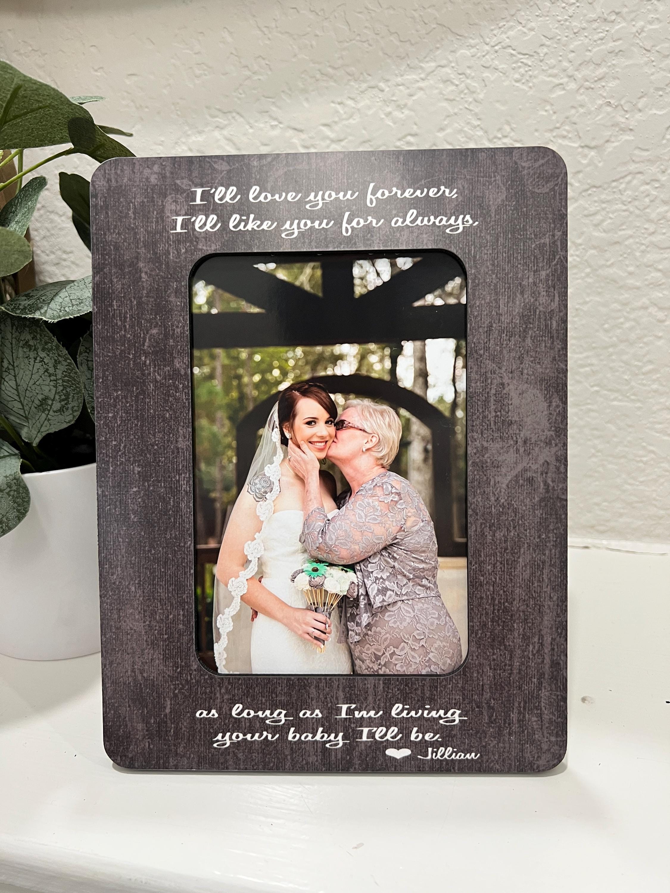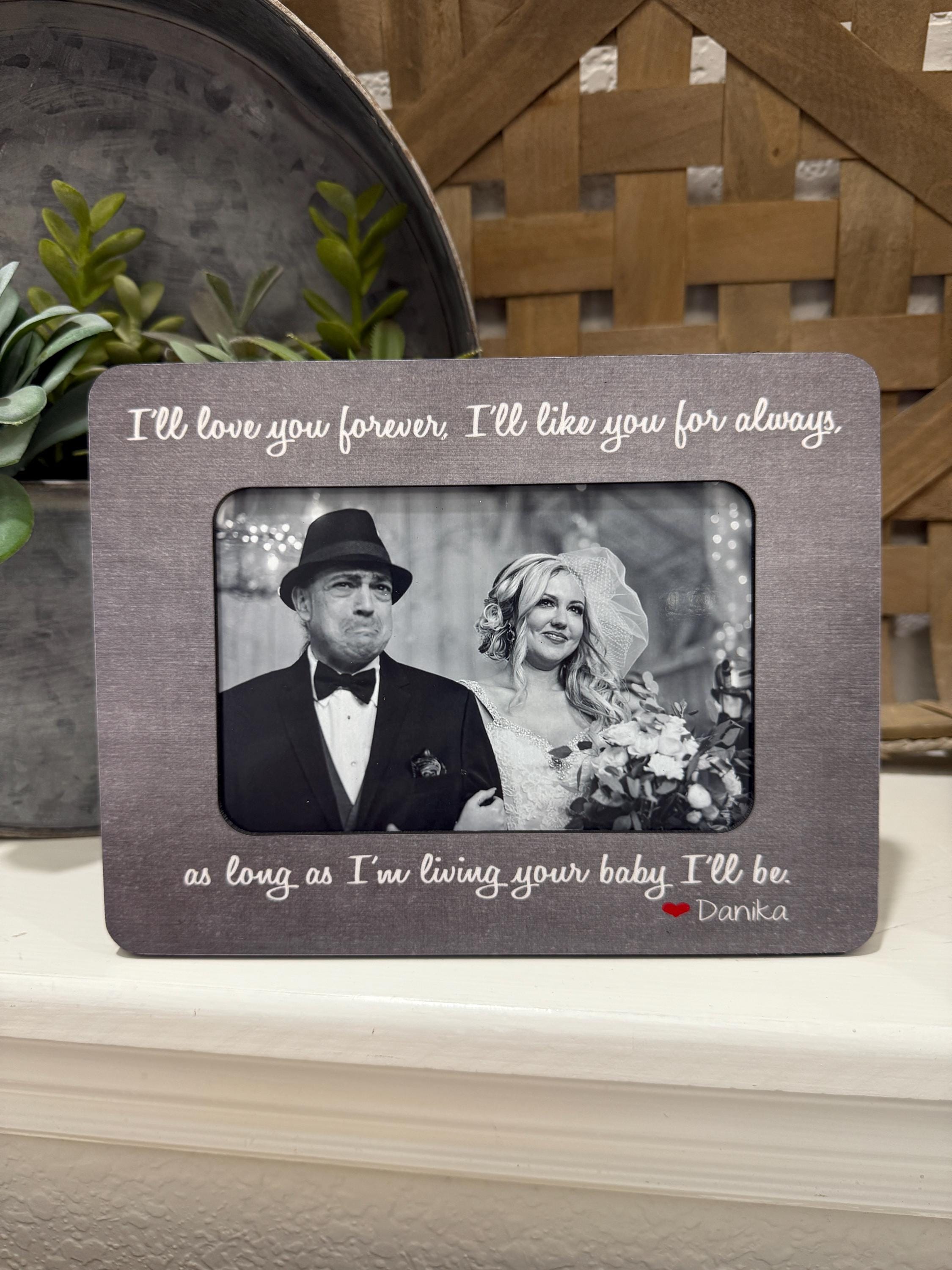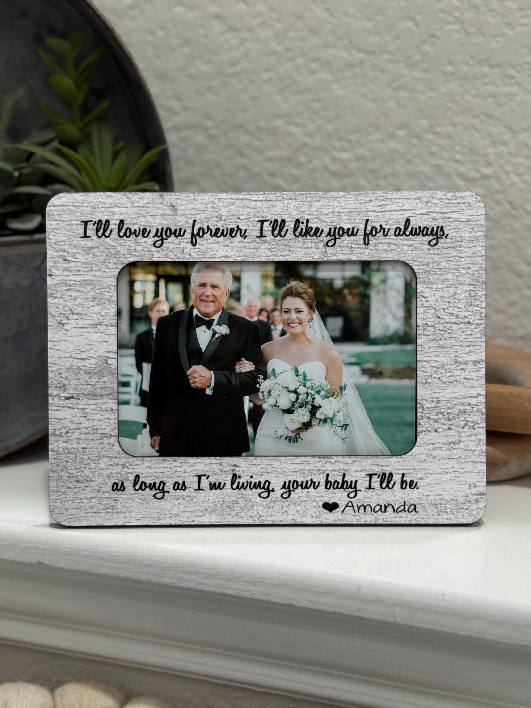 This I’ll Love You Forever picture frame is a touching Father of the Bride or Parents of the Bride gift — featuring the sweet quote, “Forever your little girl.” It’s a keepsake that beautifully captures the bond between a daughter and her dad on one of life’s most meaningful days.