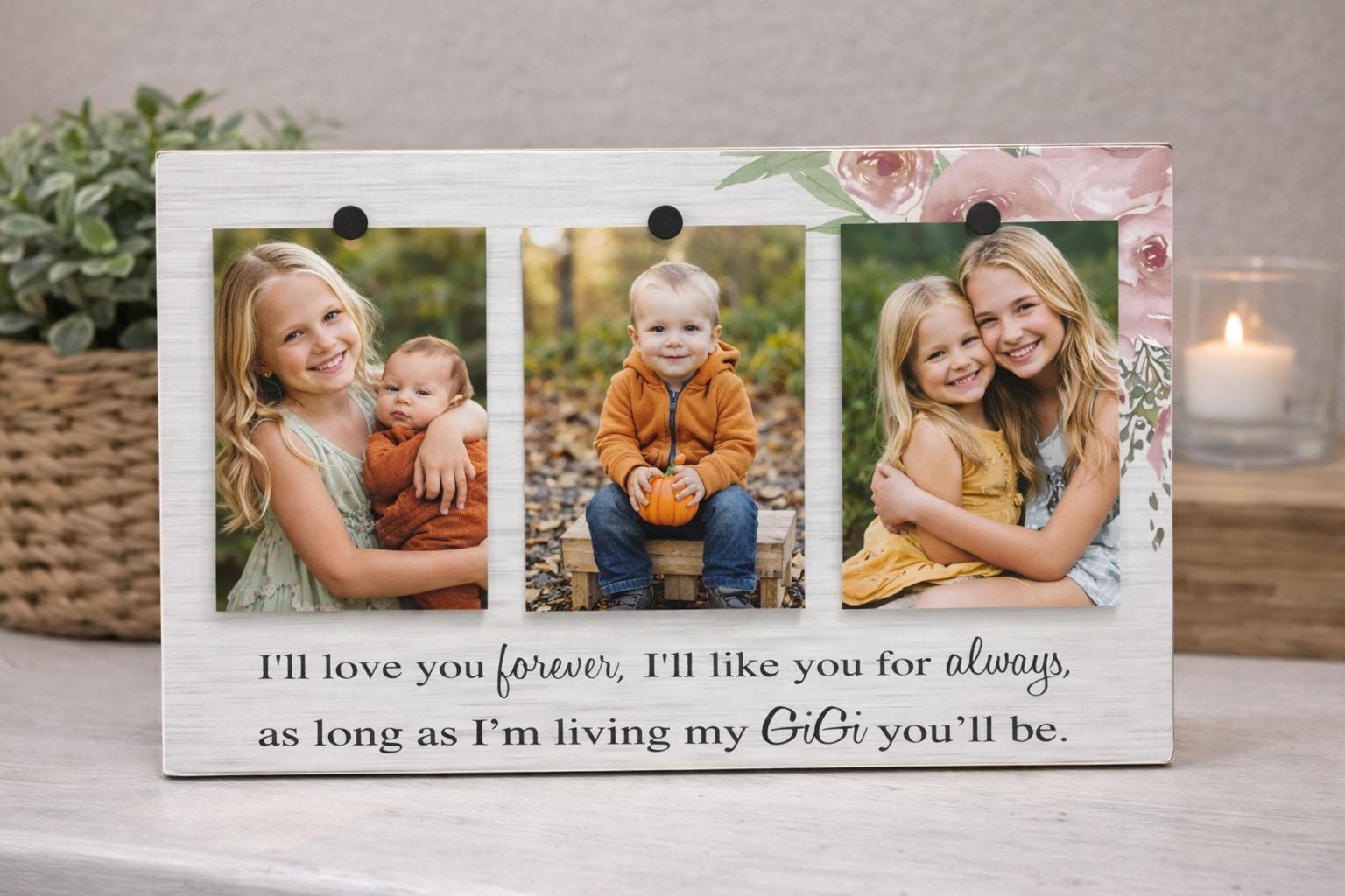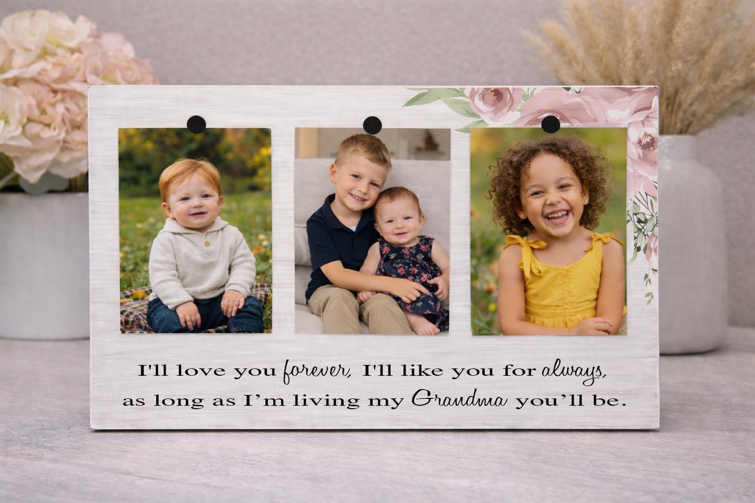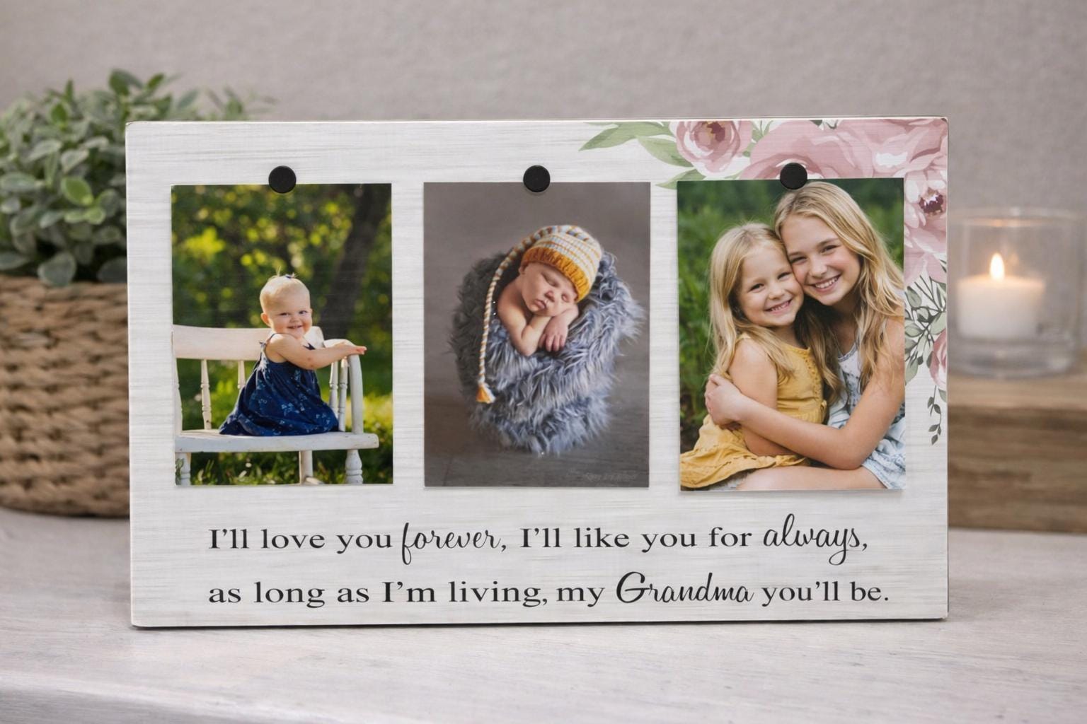 This personalized grandma frame serves as both a beautiful custom gift keepsake and an elegant photo display to showcase precious family memories. The handmade wall art decoration is perfect for Gigi, Nana, or any grandmother who treasures pictures of her loved ones, making it an ideal present that can hold multiple photographs in one stunning display.
